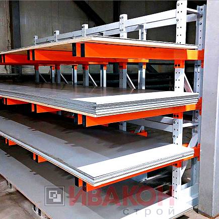 изготавливаются из труб 80*40мм и 100*50 мм. с толщиной стенки 3 мм., швеллера 12П и 14П, и подбираются в зависимости от нагрузок. Также, для достижения необходимой нагрузки, используются сдвоенные консоли. Две консоли устанавливаются параллельно с двух сторон стойки, тем самым достигается гарантированная нагрузка. Длина консолей вирируется от 400 мм. до 1500 мм. Окрашены полимерной порошковой краской.