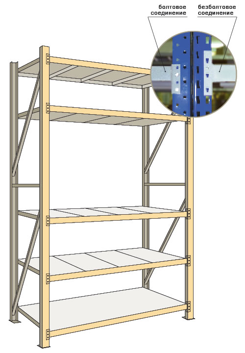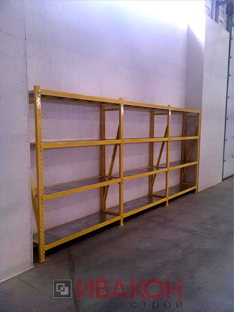Полки. Настил из металла или листа ДСП. Вставляется в место, образуемое балками и стойками стеллажа.